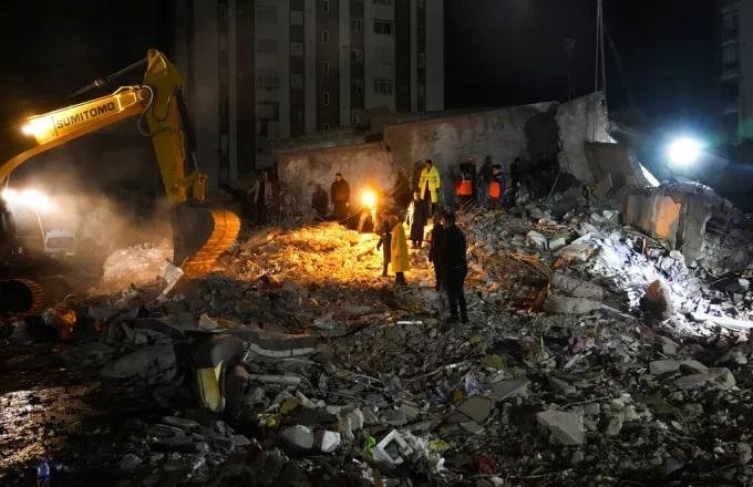 Οι επιχειρήσεις έρευνας και διάσωσης στις σεισμόπληκτες περιοχές συνεχίζονται υπό το φως προβολέων, με τη συνδρομή στρατιωτών και εθελοντών.