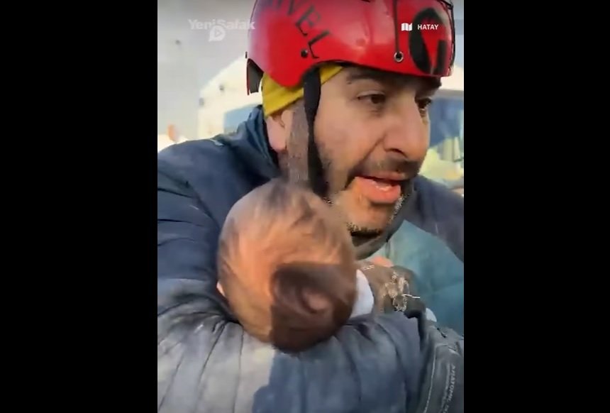 Στην περιοχή Χατάι, η οποία έχει χτυπηθεί όσο λίγες, ένα μωράκι δύο μηνών με το όνομα Μεχμέν Τσινάρ ανασύρθηκε ζωντανό από τα ερείπια ενός κτιρίου. Το μωρό οδηγήθηκε αμέσως στις ιατρικές ομάδες από τους εργαζόμενους στην έρευνα και διάσωση.