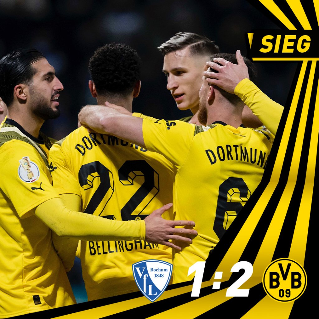 Στο 45+1’ ο Ρίμαν βγήκε μακριά από την περιοχή του κι έδιωξε την μπάλα, η οποία όμως κατέληξε στον Τσαν που από το κέντρο έγραψε το 0-1. Η Μπόχουμ ισοφάρισε στο 64ο λεπτό με το πέναλτι του Στέγκερ αλλά στο 70’ ο Μπέλινγκχαμ έφυγε από αριστερά, έδωσε έτοιμο γκολ στον Ρόις που δεν λάθεψε από κοντά κι έκανε το 1-2.