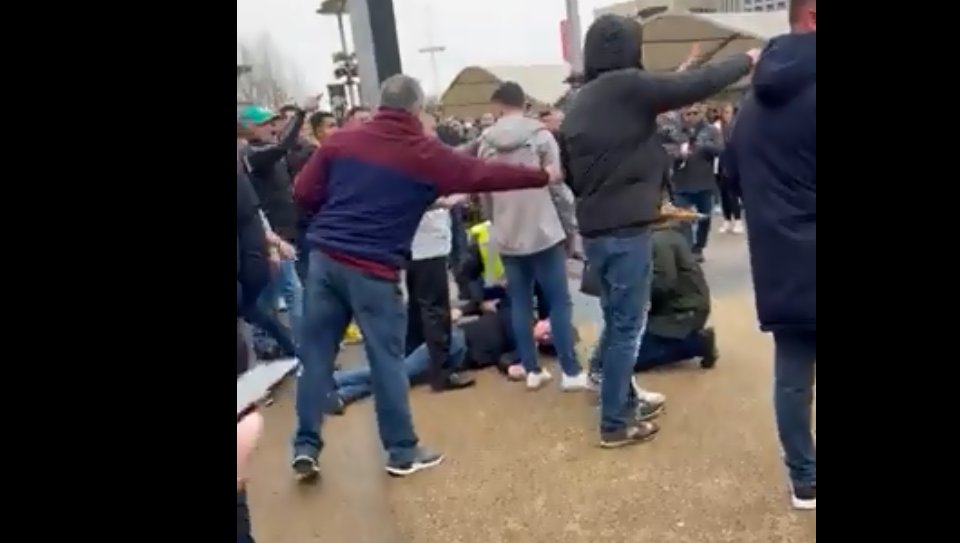 Chelsea fan knocked out by a West Ham outside the London Stadium ahead of the game today… pic.twitter.com/egctZrZkCj