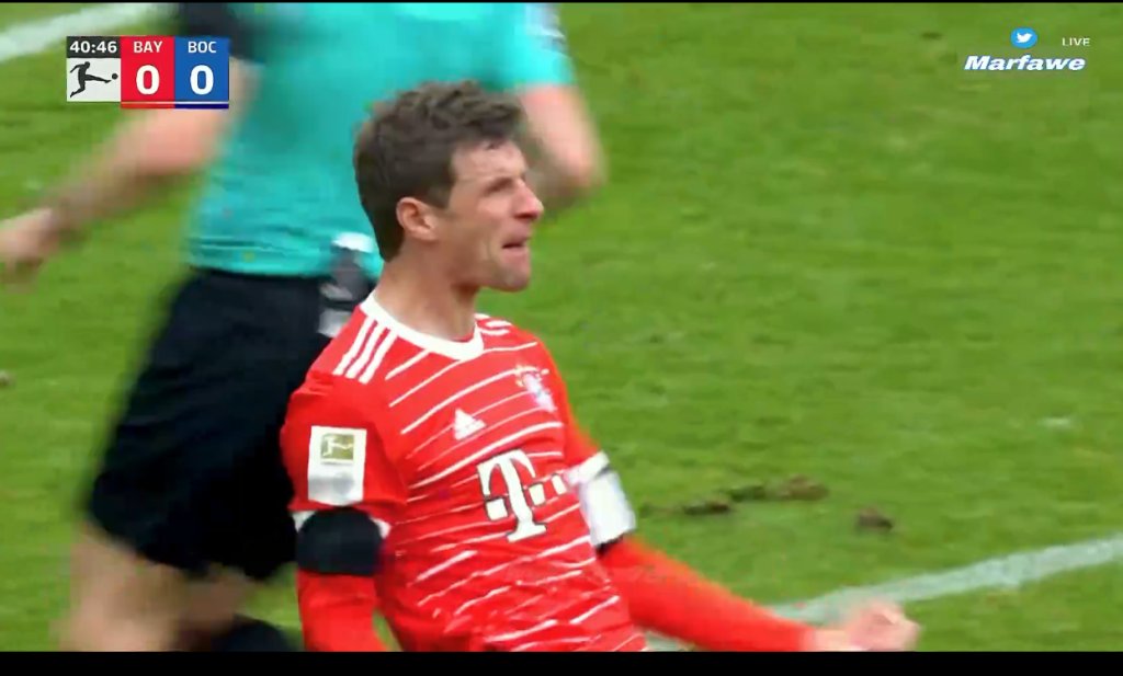 Στο 7ο λεπτό, Μίλερ και Τσούπο Μότινγκ συνδυάστηκαν ωραία, για να φτάσει η μπάλα στον Μουσιάλα, το σουτ του οποίου, ωστόσο, δεν ανησύχησε τον γκολκίπερ της Μπόχουμ. Υπό πίεση, στο 15', ο Τσούπο Μοτίνγκ έπιασε τη κεφαλιά, σε σέντρα του Κανσέλο, όμως δεν βρήκε στόχο, με την Μπάγερν να συνεχίζει να πιέζει και στο 28ο λεπτό ο Μίλερ επιχείρησε, ανεπιτυχώς, να... κρεμάσει τον Ρίμαν. Ο τερματοφύλακας της Μπόχουμ χρειάστηκε να επέμβει δυο φορές, στο 34', αποκρούοντας πρώτα το σουτ του Σανέ και, στη συνέχεια, την προσπάθεια του Γκνάμπρι. Τελικά, στη 428η εμφάνισή του, σε ματς πρωταθλήματος, με την φανέλα των πρωταθλητών, ο Μίλερ έδωσε τη λύση. Στο 42', ο στόπερ Γιάνκο θέλησε να γυρίσει την μπάλα στον τερματοφύλακά του, δεν το έκανε σωστά και ο έμπειρος επιθετικός έκλεψε μπάλα και, παρά την προσπάθεια του παίκτη της Μπόχουμ να διορθώσει το λάθος, ο Μίλερ έστειλε την μπάλα στα δίχτυα για το 1-0. Δυο λεπτά αργότερα, ο Ντε Λιχτ θέλησε να διπλασιάσει τα τέρματα των γηπεδούχων, αλλά, ο Ρίμαν απέκρουσε την κεφαλιά του Ολλανδού κεντρικού αμυντικού.
