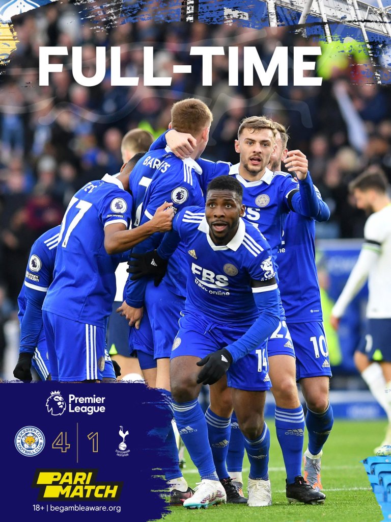 Τρίποντο παραμονής για τη Λέστερ, που επικράτησε τη Τότεναμ με 4-1 και της έβαλε δύσκολα στη μάχη που δίνει για την τετράδα. Στο +6 από τη ζώνη του υποβιβασμού οι «αλεπούδες» αλλά με ματς περισσότερο, στο -1 από την 4η θέση και τη Νιούκαστλ η Τότεναμ και μάλιστα έχοντας δύο αγώνες περισσότερους.