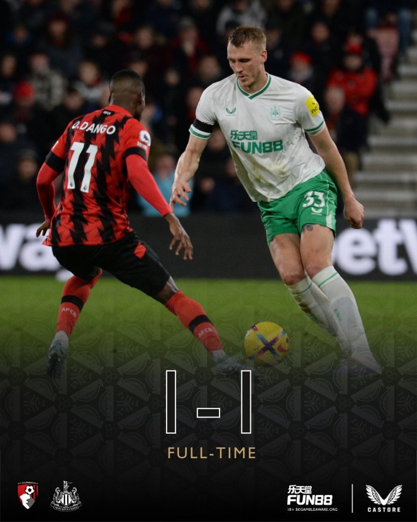 Τρίτη διαδοχική γκέλα για τη Νιούκαστλ που κόλλησε στο 1-1 στην έδρα της Μπόρνμουθ κι έχασε την ευκαιρία να ξεφύγει κι άλλο από την Τότεναμ.