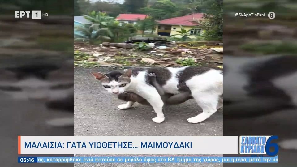 Μαλαισία: Γάτα... υιοθέτησε μαϊμουδάκι (VIDEO)