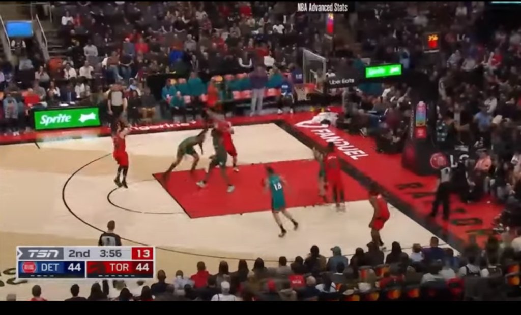 Στη Scotiabank Arena, οι Ράπτορς ξεκίνησαν καλύτερα, προηγήθηκαν 23-11, με τους Πίστονς να ανεβάζουν, σταδιακά, την απόδοσή τους και να μειώνουν για το 31-29 του 12ου λεπτού. Στο δεύτερο 12λεπτο, η ομάδα του Ντιτρόιτ πήρε προβάδισμα τεσσάρων πόντων, 47-51, αλλά, στο τέλος του ημιχρόνου, οι γηπεδούχοι ήταν μπροστά στο σκορ, 53-52. Στο τρίτο 12λεπτο, οι Ράπτορς πήραν διψήφια διαφορά, όμως δεν την ανέβασαν πάνω από τους 10 πόντους, με τους Πίστονς να μένουν ζωντανοί στη διεκδίκηση της νίκης, 84-77 στο 36ο λεπτό. Ακόμα και όταν οι Ράπτορς προηγήθηκαν με +14, 92-78, στο ξεκίνημα της τέταρτης περιόδου, οι Πίστονς δεν το έβαλαν κάτω. Με το σκορ στο 108-95, 3:27 πριν το τέλος, η ομάδα του Ντιτρόιτ μείωσε σε 116-113, στα 10.1 δευτερόλεπτα. Ακολούθησαν εύστοχες βολές, από ΦανΒλίτ και Μπογκντάνοβιτς, 118-115, ο Ατσούα των Ράπτορς άγχωσε τους γηπεδούχους όταν αστόχησε στη βολή, έβαλε όμως τη δεύτερη, 119-115, με αποτέλεσμα το τρίποντο, στο φινάλε, του Άιβι, για το 119-118, να μην αλλάζει κάτι ως προς τον τελικό νικητή.