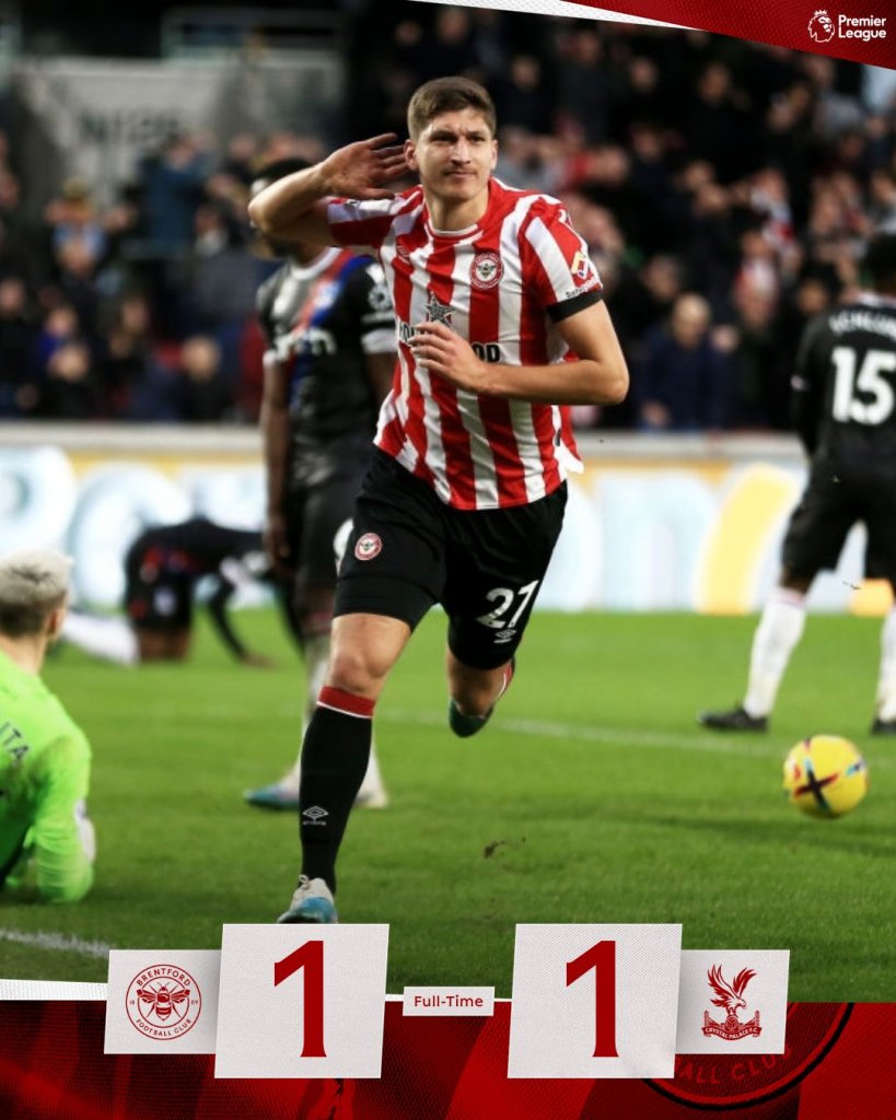 Το έσωσε στο τέλος η Μπρέντφορντ που πήρε ισοπαλία 1-1 από την Πάλας χάρη σε γκολ του Γιάνελτ στο 90+6’/