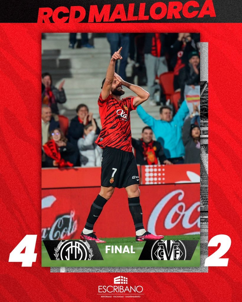 Σε ένα παιχνίδι με πολλά γκολ, αποβολές και VAR η Μαγιόρκα επικράτησε με 4-2 της Βιγιαρεάλ και κράτησε ζωντανές τις ελπίδες της για ένα ευρωπαϊκό εισιτήριο. Με 10 παίχτες τελείωσαν την αναμέτρηση οι φιλοξενούμενοι λόγω αποβολής του Τριγκέρος.