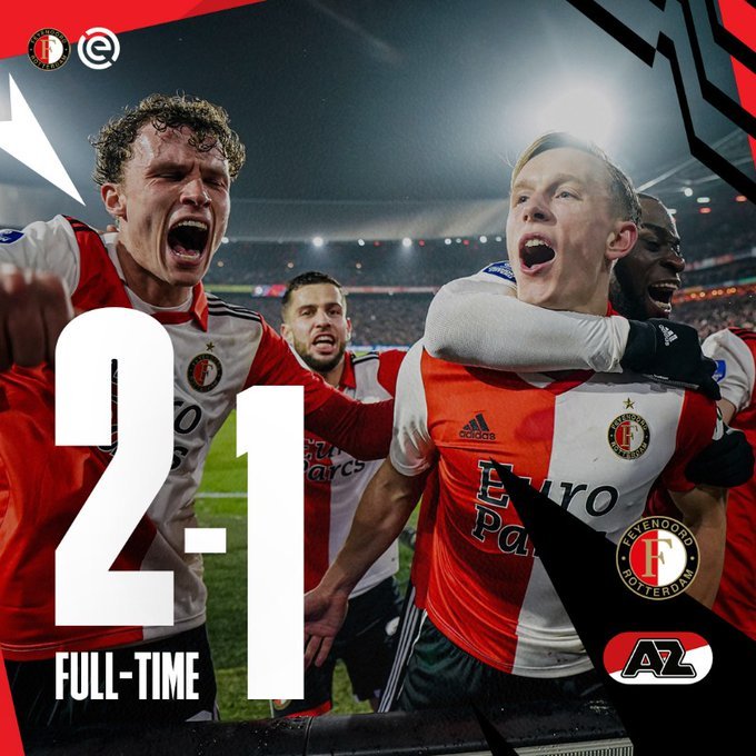 Νίκη τίτλου για την Φέγενορντ! Οι γηπεδούχοι βρέθηκαν νωρίς πίσω στο σκορ, ισοφάρισαν και στις καθυστερήσεις του αγώνα κατάφεραν να γυρίσουν το ματς «τούμπα», παίρνοντας με αυτόν τον τρόπο μια τεράστια νίκη. Στους πέντε βαθμούς πλέον η διαφορά των δύο ομάδων.