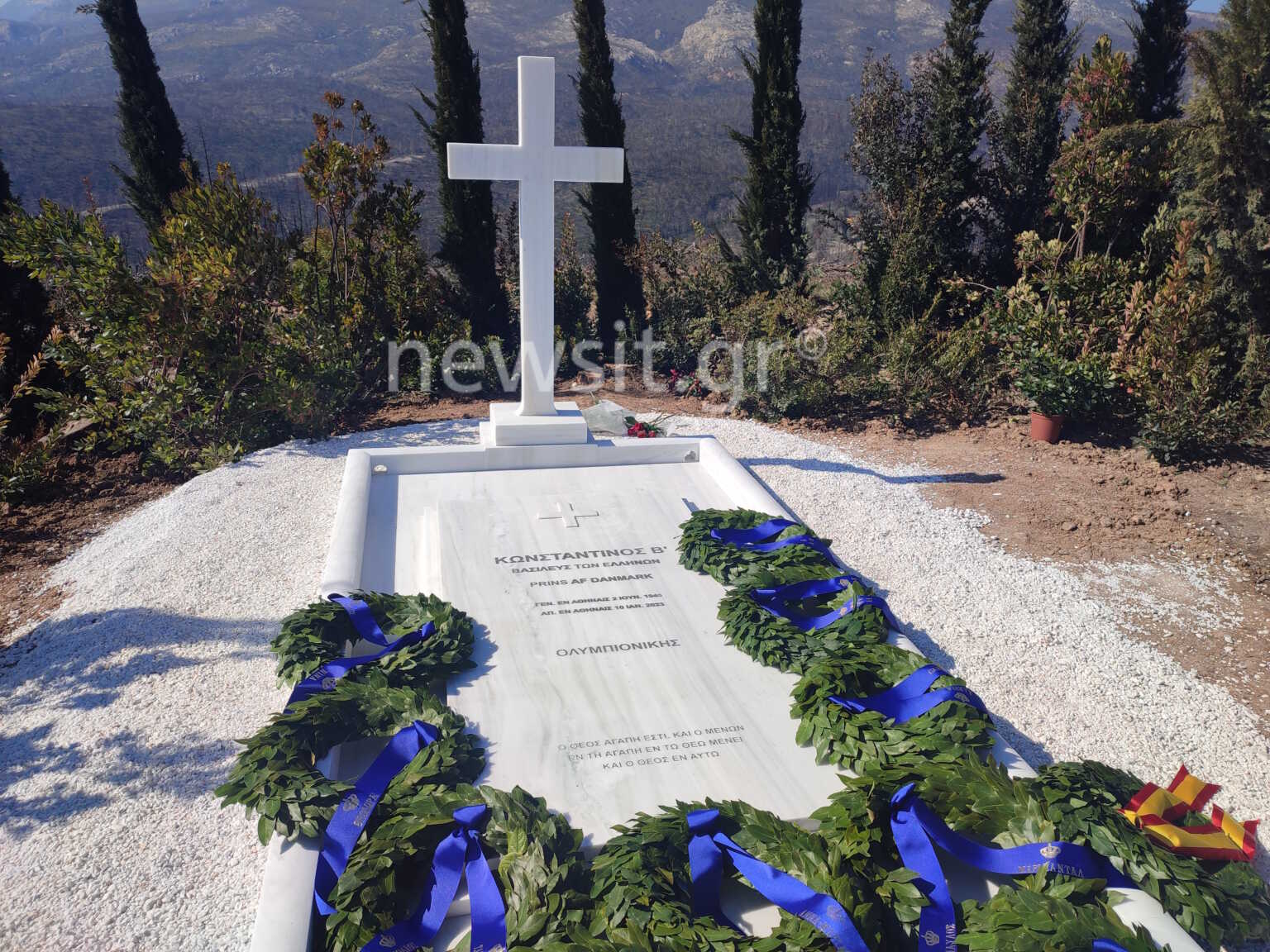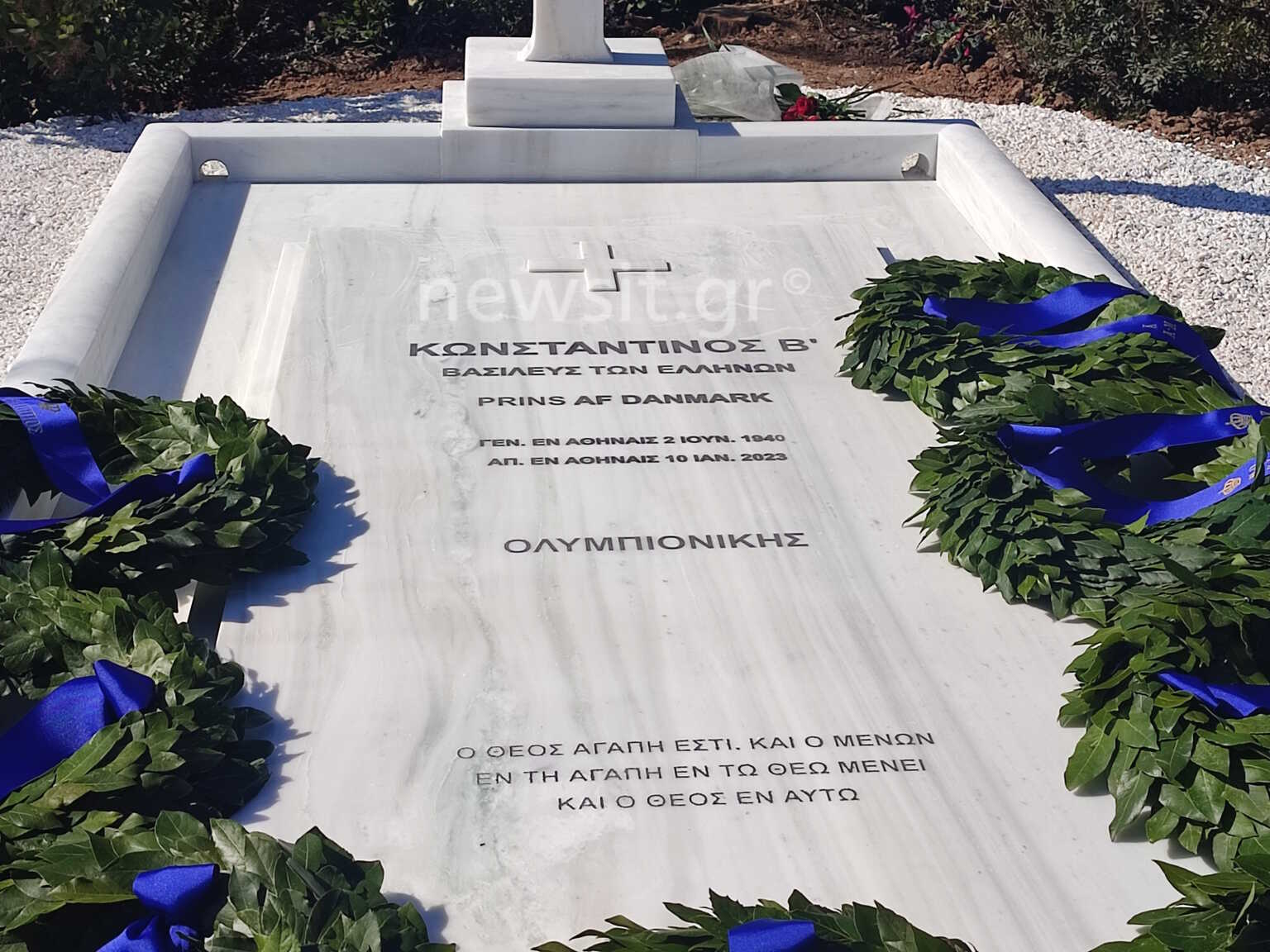 Μετά το τρισάγιο οι συγγενείς του τέως βασιλιά Κωνσταντίνου πήγαν στο χώρο, όπου βρίσκεται ο τάφος για να γίνουν τα αποκαλυπτήρια του. Υπενθυμίζεται ότι μέχρι πρότινος δεν είχε γίνει γνωστό το τι θα αναγράφεται στην επιγραφή πάνω στο μνήμα του.