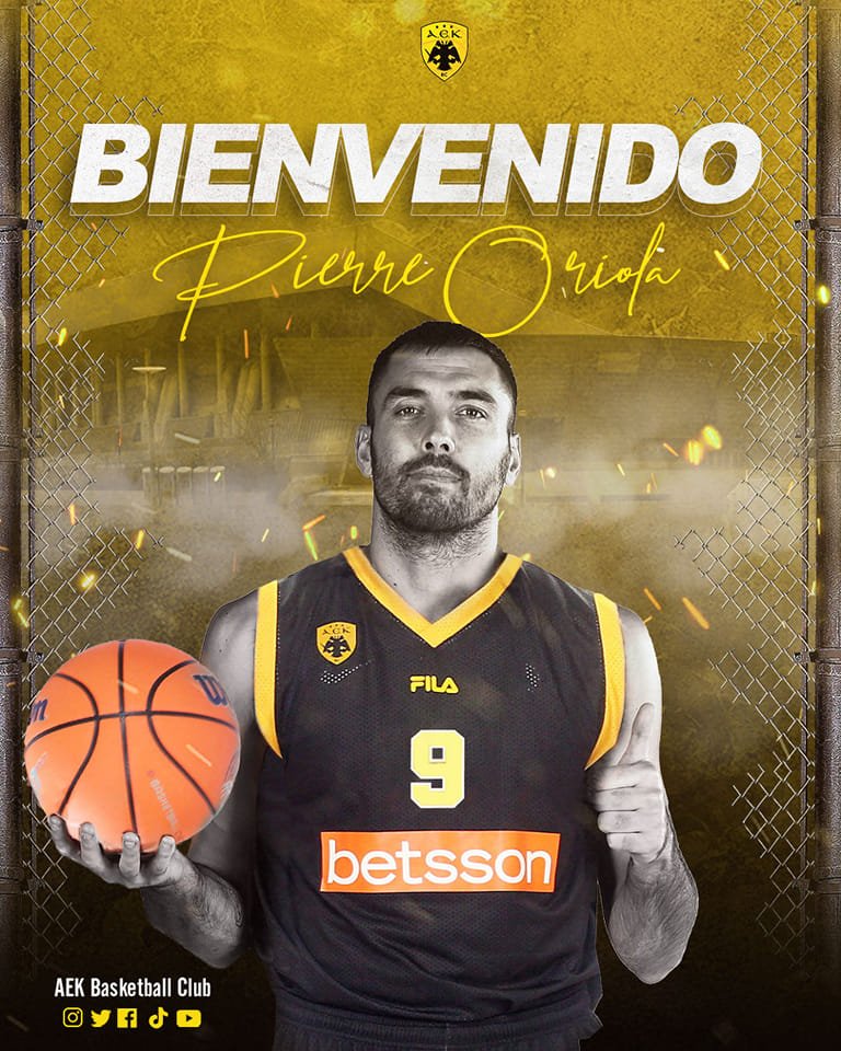 Η επίσημη ανακοίνωση στην επίσημη σελίδα της Βασίλισσας στο Facebook: «H AEK BC ανακοινώνει, ότι ο Πιέρ Οριόλα (Pierre Oriola, 30 χρ., 2μ.08) συνήψε συμφωνία με τη «Βασίλισσα» ✍????
