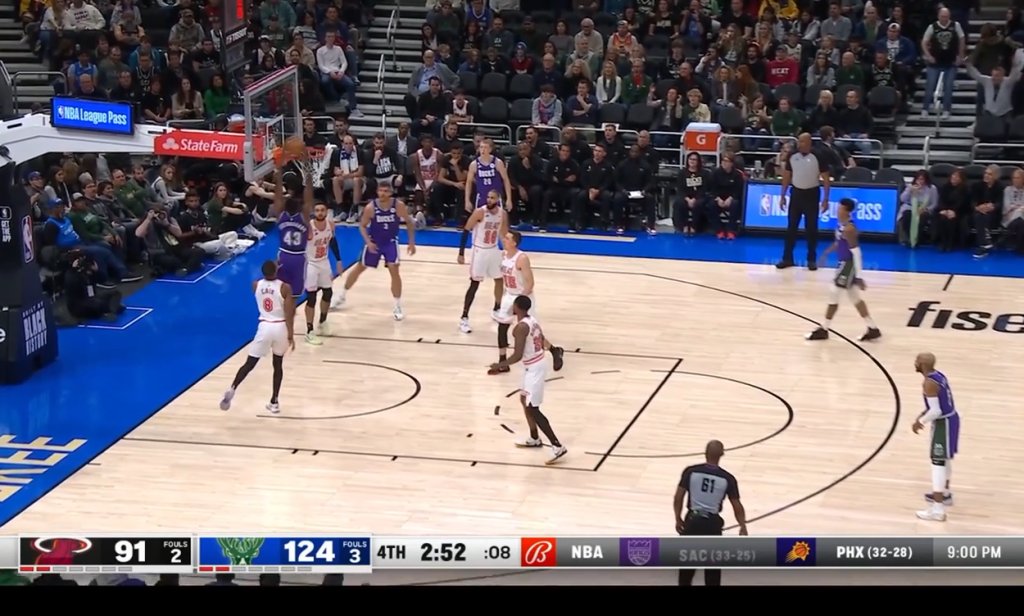 Με 9/40 τρίποντα, οι Χιτ δεν είχαν τύχη απέναντι στους φορμαρισμένους Μπακς, με την ομάδα του Μαϊάμι να βρίσκεται εκτός εξάδας, που δίνει, απευθείας, το εισιτήριο για τα playoffs. Στο Fiserv Forum, οι Χιτ στηρίχθηκαν στον Τζίμι Μπάτλερ (23 πόντοι με 8/10 σουτ) και στον Μπαμ Αντεμπάγιο (18 πόντοι, 7 ριμπάουντ). Ο Τάιλερ Χίρο (5/15 σουτ) ήταν πολύ άστοχος και ο Κέβιν Λοβ δεν σκόραρε στο ντεμπούτο του με την ομάδα του Μαϊάμι.