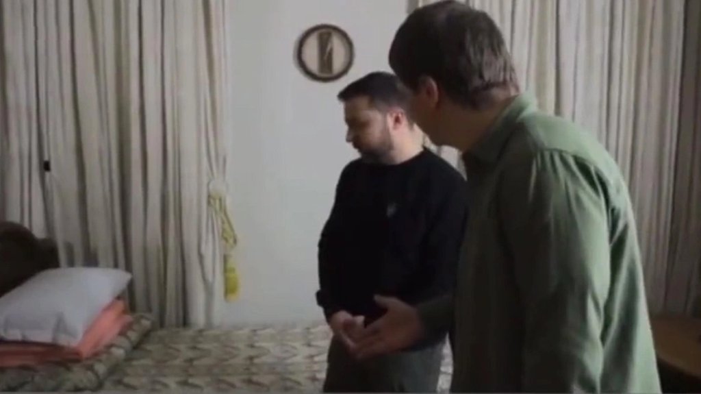 «Εδώ μένω εδώ και έναν χρόνο», λέει ο πρόεδρος της Ουκρανίας Βολοντίμιρ Ζελένσκι, αποκαλύπτοντας το δωμάτιο στο οποίο διαμένει κατά τη διάρκεια του πολέμου.