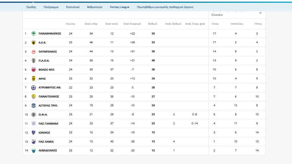 H 24η αγωνιστική ολοκληρώνεται με τις εξής αναμετρήσεις: