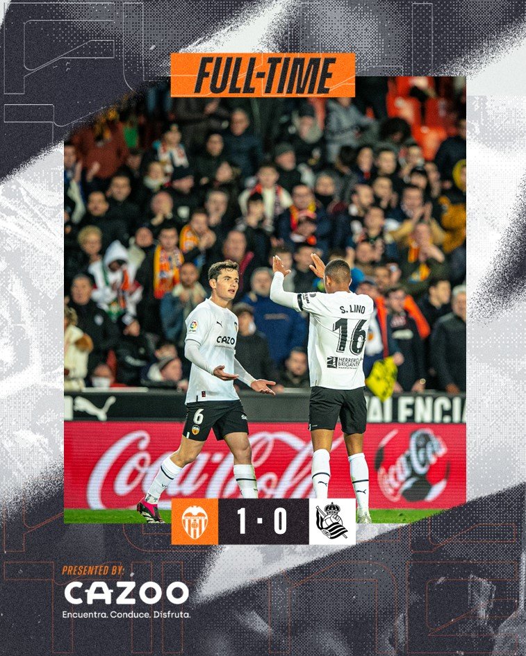 Ανάσανε η Βαλένθια! Οι «Νυχτερίδες» νίκησαν με 1-0 την Ρεάλ Σοσιεδάδ στο «Μεστάγια» και βρέθηκαν εκτός επικίνδυνης ζώνης. Παραμένουν στην τρίτη θέση του βαθμολογικού πίνακα οι φιλοξενούμενοι.