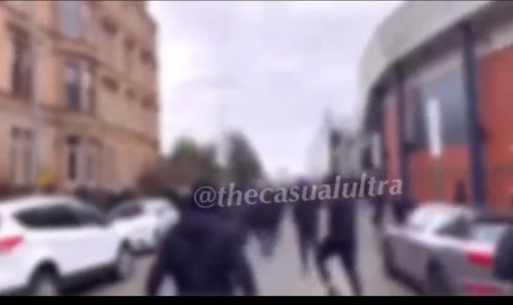 ~100 Bhoys and Green Brigade (Celtic) turn up to Hampden while Union Bears (Rangers) are setting up tifo this morning. ~100 UB attack back and Celtic run, several injuries from Celtic, none from rangers. pic.twitter.com/0aPYA6nCm0