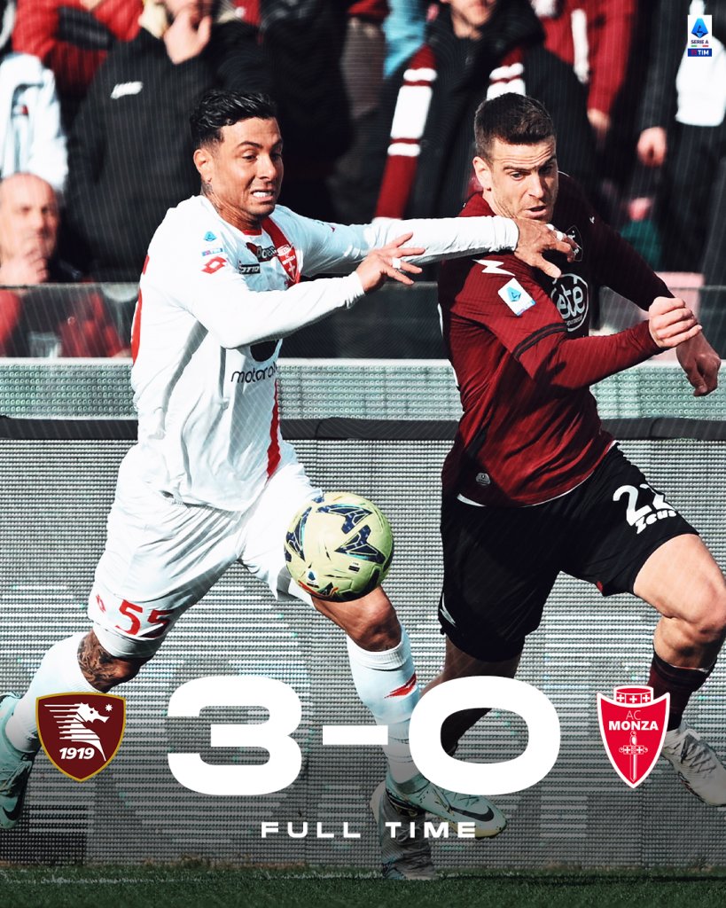 Νίκη-χρυσάφι για τη Σαλερνιτάνα που επικράτησε της Μόντσα με 3-0 και βρέθηκε στο +7 από τη 18η Βερόνα αλλά με ένα ματς παραπάνω.
