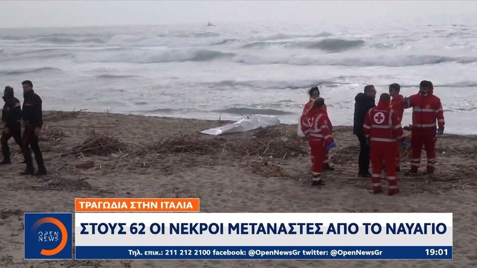 Μεγαλώνει η λίστα των νεκρών από το ναυάγιο με μετανάστες στην Ιταλία. Πάνω από 60 άνθρωποι έχασαν τη ζωή τους, ανάμεσά τους πολλά παιδιά, ενώ δεκάδες ακόμη αγνοούνται, όταν ξύλινο σκάφος που μετέφερε μετανάστες από την Τουρκία, διαλύθηκε εν μέσω φουρτούνας στα ανοικτά της Καλαβρίας στη νότια Ιταλία