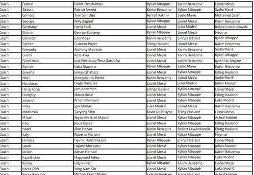 Μετά το πέρας της εκδήλωσης και της απονομής στη Ζυρίχη, δόθηκαν στη δημοσιότητα οι ψήφοι προπονητών και παικτών. Ο Γκας Πογιέτ η αλήθεια είναι προκάλεσε έκπληξη με τις ψήφους του καθώς δεν ψήφισε πρώτο τον Λιονέλ Μέσι, αλλά τον Έρλινγκ Χάαλαντ! Τρίτο άφησε τον Καρίμ Μπενζεμά και δεν ψήφισε καθόλου στον Κιλιάν Εμπαπέ.