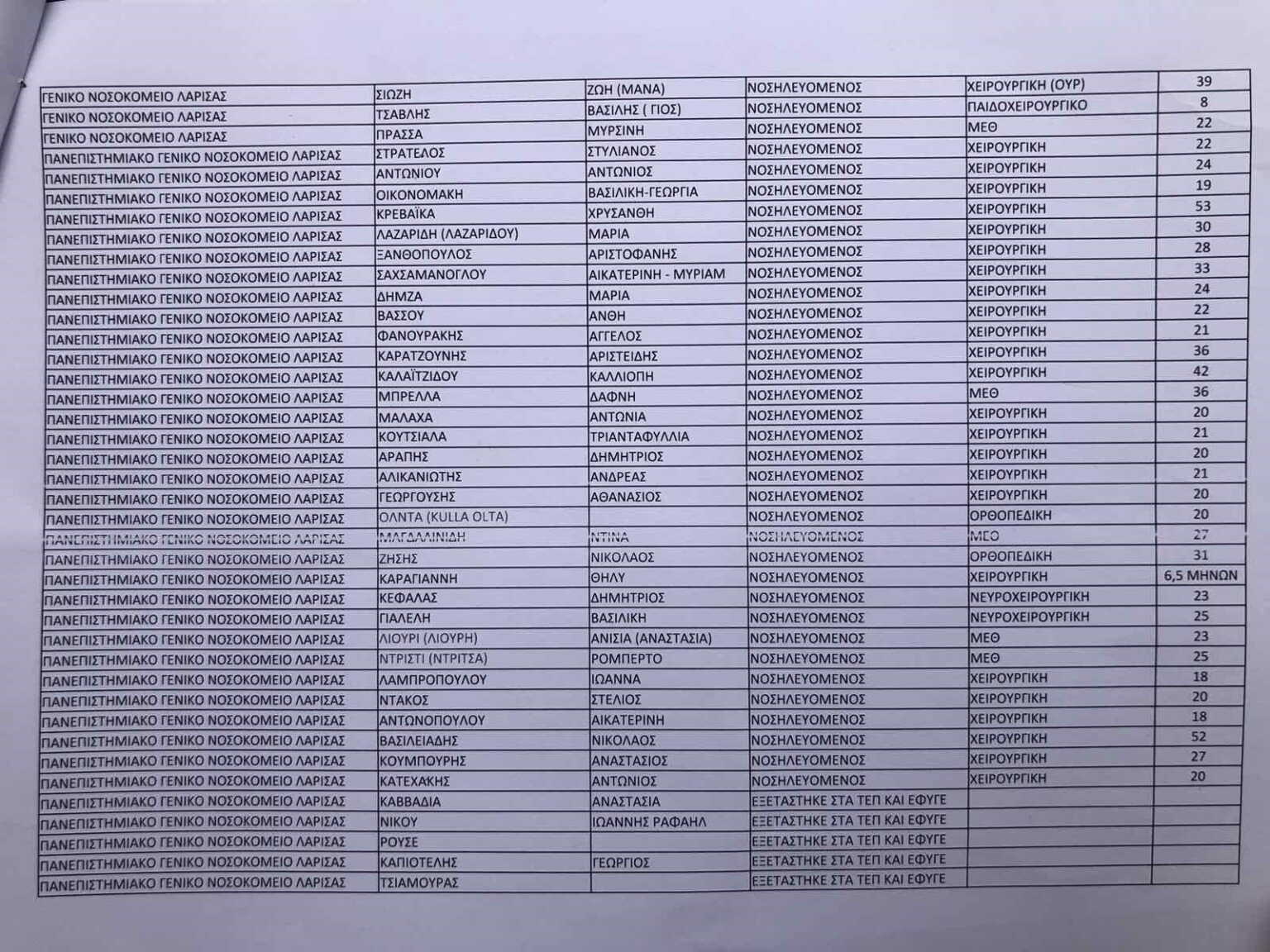 20 άτομα νοσηλεύονται σε ΑΧΕΠΑ, Γεννηματά και Νοσοκομείο Κατερίνης, 22 στο ΓΝΛ, 32 στο ΠΓΝΛ και έξι νοσηλεύονται στις ΜΕΘ στη Λάρισα.