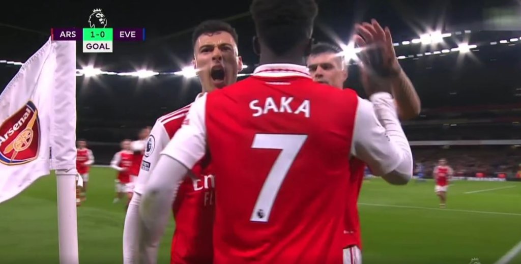 Η λύση για την ομάδα του Αρτέτα ήρθε στο 40ο λεπτό. Οι παίκτες άλλαξαν με υπομονή την μπάλα, ο Ζιντσένκο βρήκε κάθετα τον Σάκα που γύρισε στην περιοχή και με σουτ από πλάγια δεξιά έγραψε το 1-0. Μάλιστα στο 45+1’ ο Σακά έκλεψε από τον Γκέιγ και ο Μαρτινέλι έφυγε απέναντι στον Πίκφορντ και πλάσαρε για το 2-0.