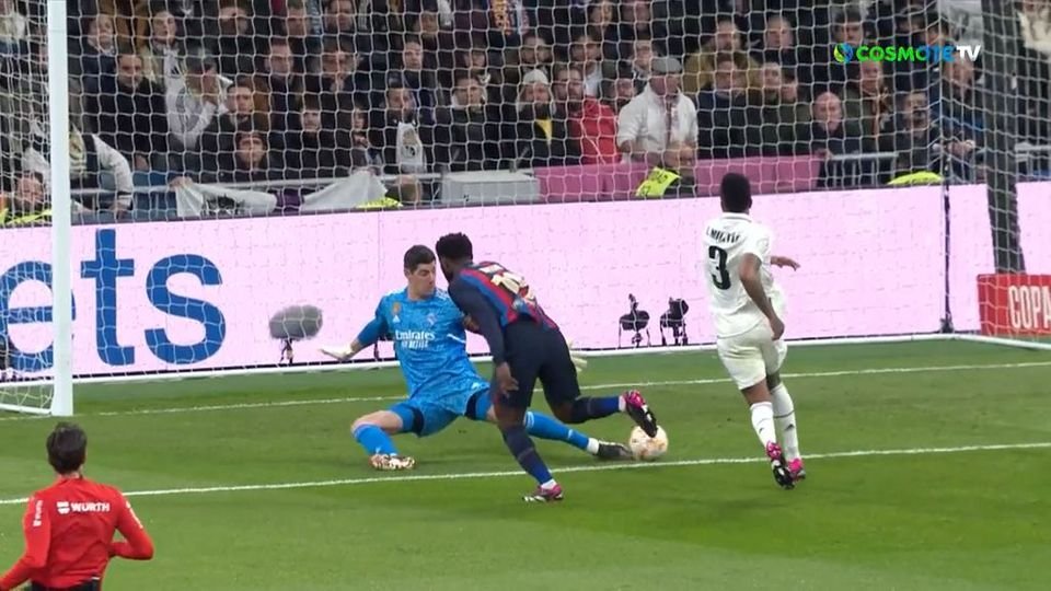 Στο 26’ η Μπαρτσελόνα έπιασε στον ύπνο την άμυνα της Ρεάλ, ο Ντε Γιονγκ άνοιξε αριστερά στον Κεσί που πλάσαρε πάνω στον Κουρτουά αλλά η μπάλα κόντραρε στον Μιλιτάο και κατέληξε στα δίχτυα της βασίλισσας για το 0-1 παρά την προσπάθεια του Νάτσο να απομακρύνει