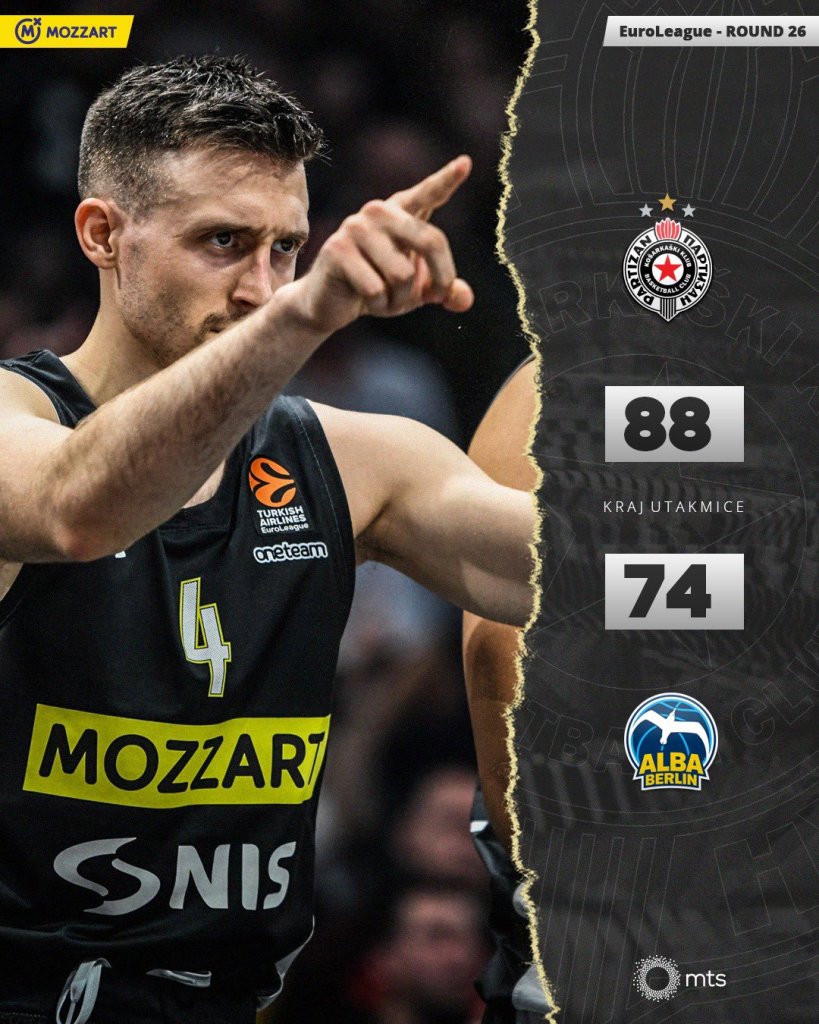 Χάρη στο 35-9 της τρίτης περιόδου η Παρτιζάν επικράτησε με της Άλμπα, στο πλαίσιο της 26ης αγωνιστικής της EuroLeague και ανέβηκε στο 14-12.