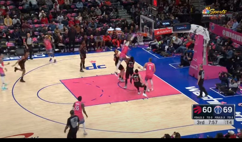 Ο σέντερ των Γουίζαρντς κάρφωσε μπροστά από τον Σιάκαμ των Ράπτορς, στην κορυφαία φάση των αγώνων, που έγιναν τα ξημερώματα