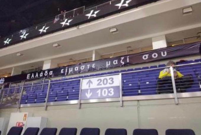 «Ελλάδα είμαστε μαζί σου» αναγράφει το σχετικό πανό στο γήπεδο της Φενέρμπαχτσε