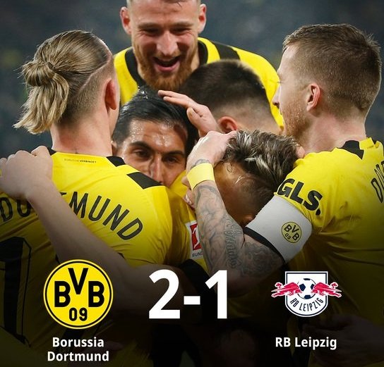 H Ντόρτμουντ νίκησε με 2-1 τη Λειψία και παραμένει στην κορυφή του πρωταθλήματος. Οι γηπεδούχοι σκόραραν στο 13’ με τον Μπραντ αλλά το VAR εντόπισε χέρι του παίκτη της Ντόρτμουντ. Επτά λεπτά ο Μπλάσβιχ ανέτρεψε τον Ρόις και ο διαιτητής έδωσε πέναλτι. Το εκτέλεσε ο παίκτης που το κέρδισε και έκανε το 1-0. Στο 39’ ήρθε το δεύτερο γκολ των Βεστφαλών με σουτ του Τσαν που κόντραρε και κατέληξε στα δίχτυα. Η Λειψία κατάφερε να μειώσει στο 74’ με προβολή από κοντά του Φόρσμπεργκ.