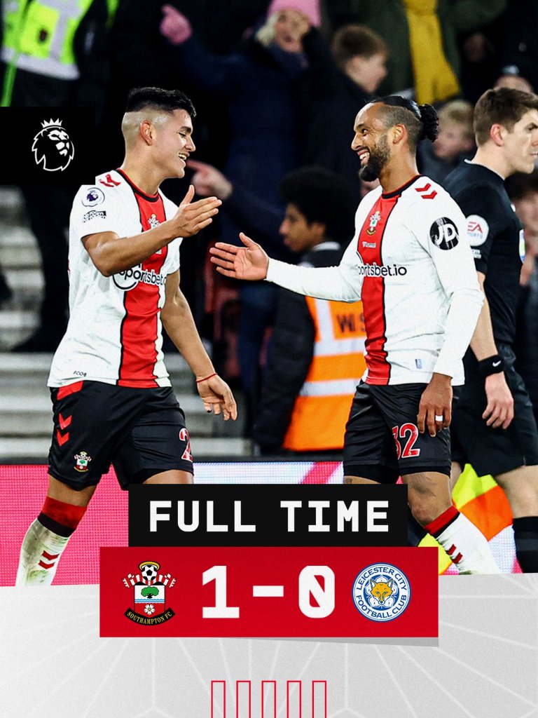 Η Σαουθάμπτον κέρδισε με 1-0 τη Λέστερ κι έμεινε ζωντανή στη μάχη της παραμονής. Οι «άγιοι» κέρδισαν με 1-0 τη Λέστερ και βρέθηκαν στους 21 βαθμούς όσους έχουν και οι Μπόρνμουθ-Έβερτον. Στους 24 βαθμούς έμεινε η Λέστερ που δε λέει να ξεμπλέξει.