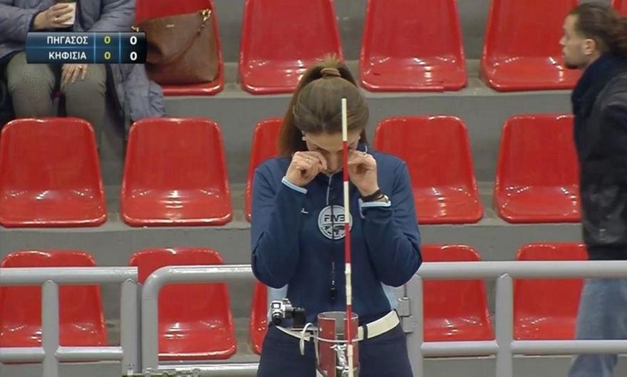 Στο γήπεδο η συγκίνηση ήταν έντονη, με τη διαιτητή Έλενα Δανιηλίδου να μην μπορεί να συγκρατήσει τα δάκρυά της.
