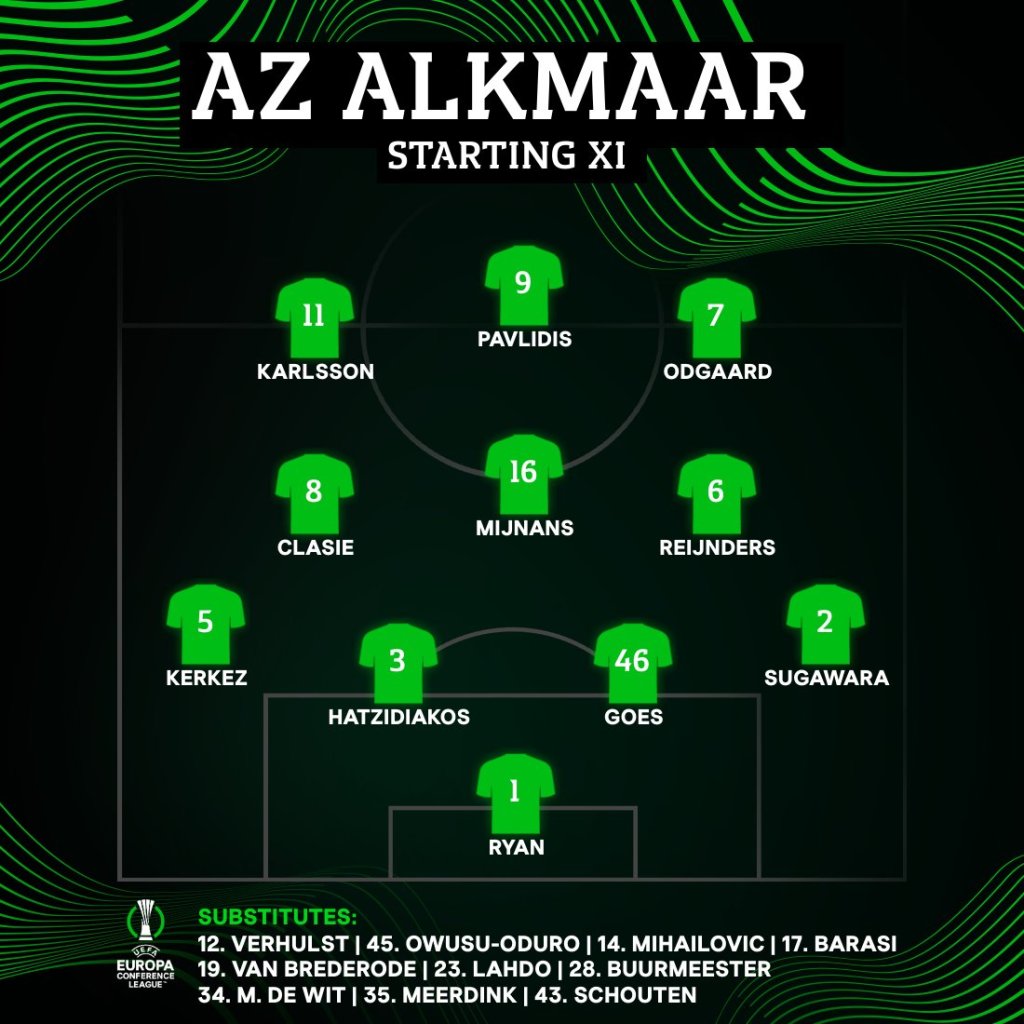 ΑΛΚΜΑΑΡ: Ράιαν, Σουγκαβάρα, Χατζηδιάκος, Γκους, Κερκέζ, Ράιντερς, Κλασί, Μάινανς, Κάρλσον, Όντγκααρντ, Παυλίδης.