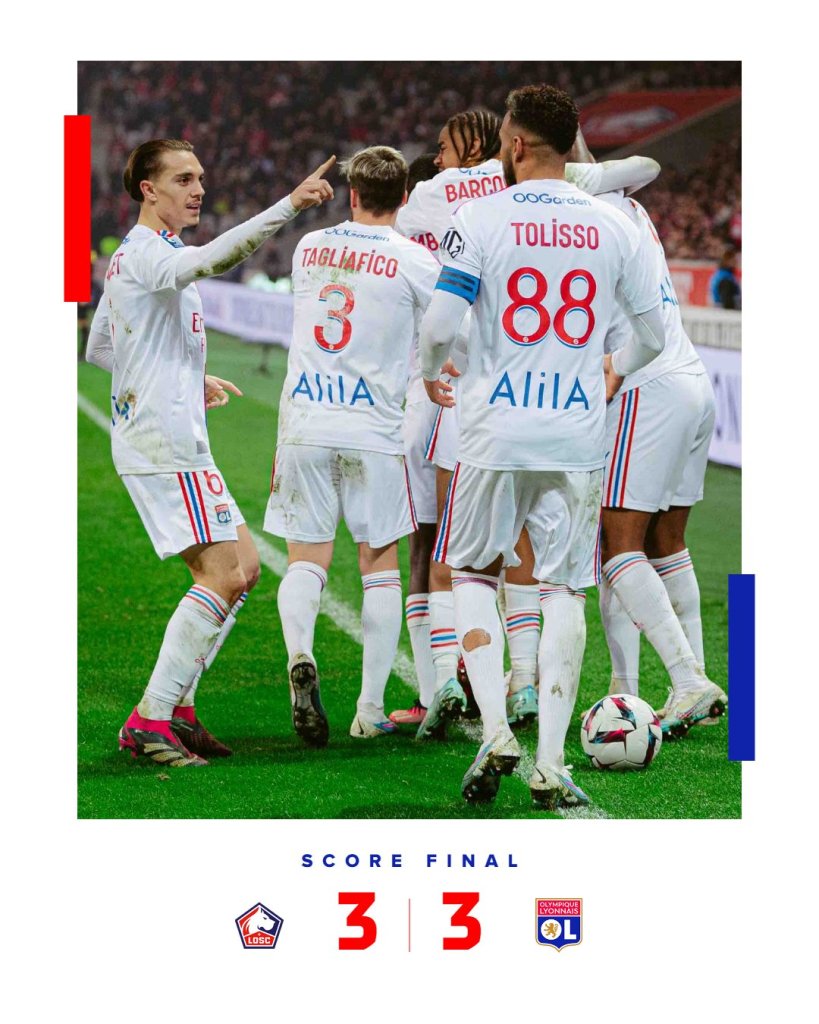 Σε ένα παιχνίδι που τα είχε όλα, Λιλ και Λιόν αναδείχθηκαν ισόπαλες 3-3 για την 27η αγωνιστική της Ligue 1.