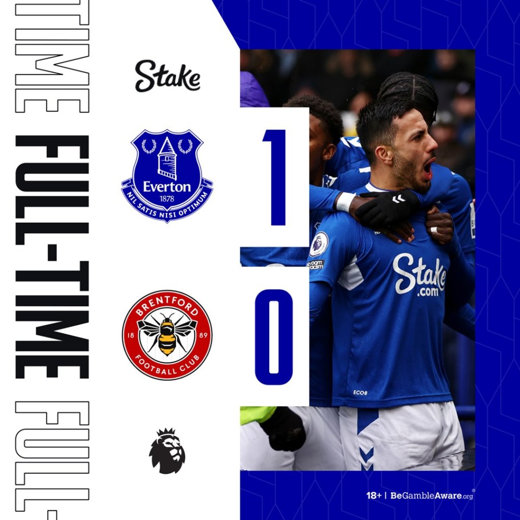Τρίποντο ανάσα για την Έβερτον που κέρδισε με 1-0 την Μπρέντφορντ και βγήκε από τη ζώνη του υποβιβασμού.