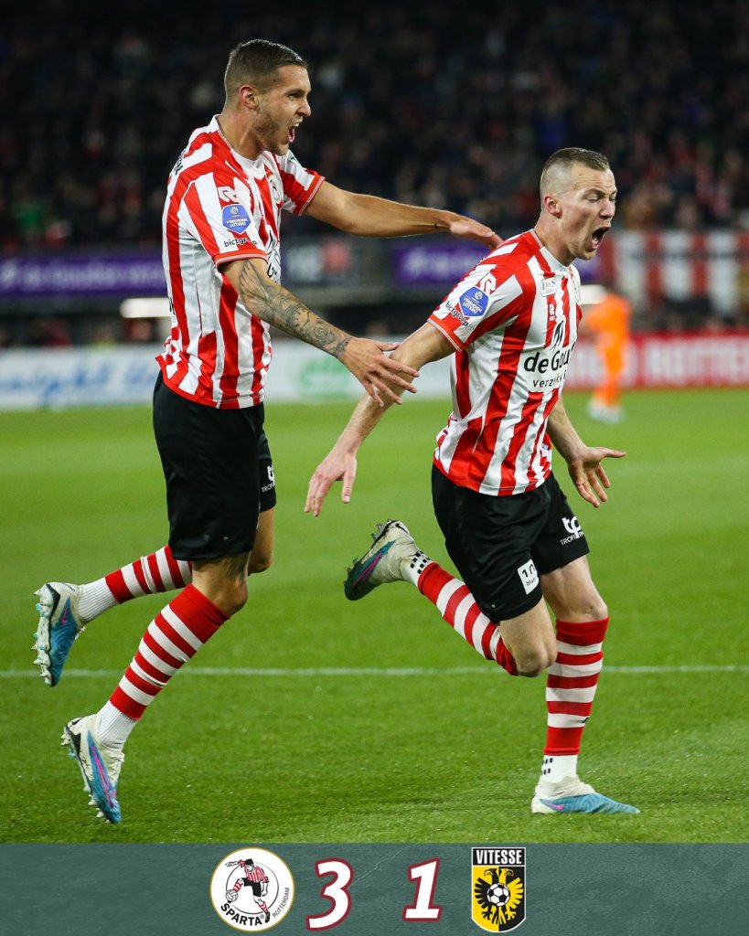Η Σπάρτα Ρότερνταμ αν και βρέθηκε πίσω στο σκορ, κατάφερε να φέρει…τούμπα το παιχνίδι και να επικρατήσει με 3-1 της Φίτεσε. Παραμένουν στο +3 από την ζώνη του υποβιβασμού οι φιλοξενούμενοι.