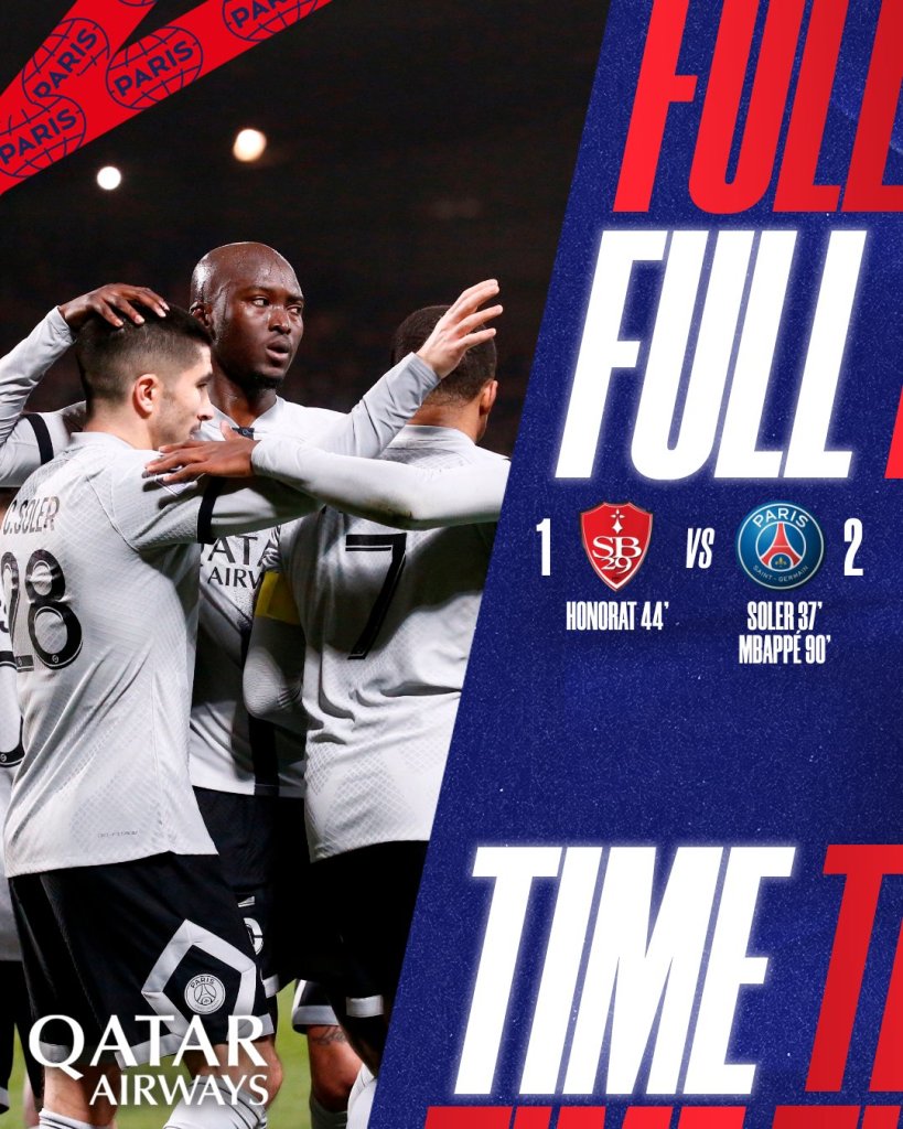 H Παρί Σεν Ζερμέν αν και δυσκολεύτηκε αρκετά τελικά κέρδισε με 2-1 την Μπρέστ και ανέβασε την διαφορά στους 11 βαθμούς από την δεύτερη Μαρσέιγ, έχοντας βέβαια παιχνίδι περισσότερο.