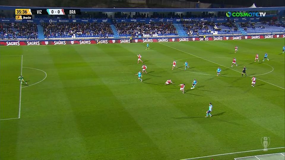 Ο Όσμασιτς της Βισέλα έφυγε, από εμφανή θέση οφσάιντ, στην πλάτη της άμυνας, με τον Αλφόνσο, στην εξέλιξη της φάσης, να ανατρέπεται εντός περιοχής και τον ρέφερι να καταλογίζει πέναλτι.