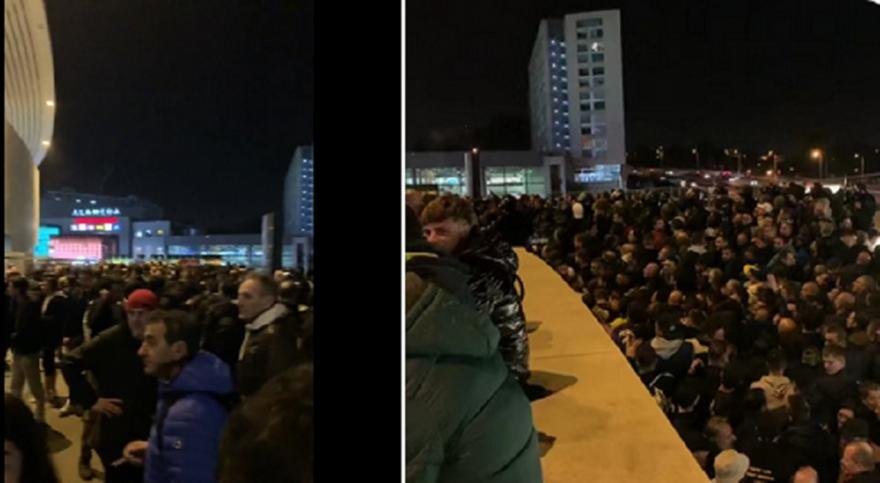 Διότι περισσότεροι από 2500 οπαδοί των «νερατζούρι» βρίσκονται περιμετρικά του γηπέδου και συμβαίνει το αδιαχώρητο, με την αστυνομία να μην τους επιτρέπει να μπουν στο γήπεδο για άγνωστο λόγο. Και ενώ προηγουμένως τους είπαν πως θα μπορέσουν άπαντες να μπουν στη θύρα που είχαν εξασφαλίσει οι φιλοξενούμενοι.