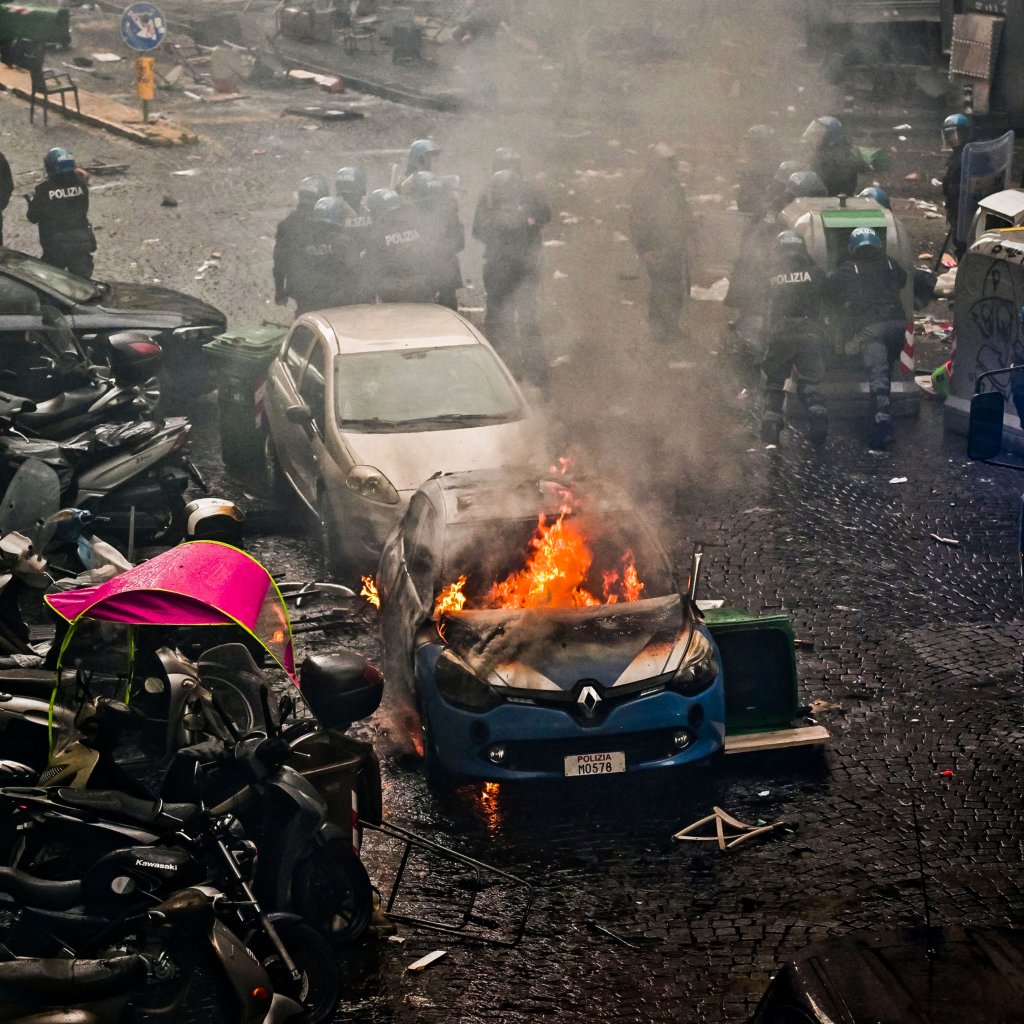 Guerriglia totale a Napoli a poche ore dal fischio d’inizio della sfida Champions contro l’Eintracht. Proseguono gli scontri tra la polizia e alcuni gruppi ultras tedeschi #napoli #eintracht #sportitalia pic.twitter.com/cbn4wR1hlK