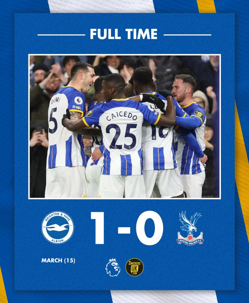 Την εντυπωσιακή φετινή της πορεία συνεχίζει η Μπράιτον που κέρδισε με 1-0 την Κρίσταλ Πάλας και βλέπει ακόμη και τετράδα.
