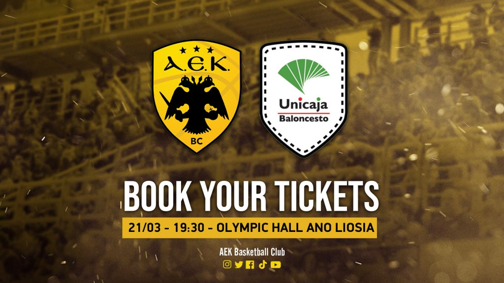 Η ΚΑΕ ΑΕΚ ανακοίνωσε επίσημα ότι ξεκίνησε η διάθεση των εισιτηρίων για το ματς που θα κρίνει την 1η θέση στον Κ’ Όμιλο του Basketball Champions League, όπου η Βασίλισσα θα υποδεχθεί την Ουνικάχα Μάλαγα στα Λιόσια την Τρίτη (21/03, 19:30).