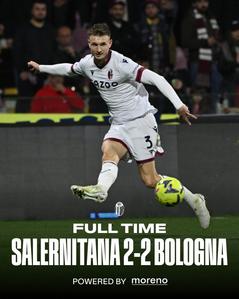 Όρθια στην έδρα της Σαλερνιτάνα έμεινε η Μπολόνια που απέσπασε ισοπαλία 2-2. Έλαμψαν Κυριακόπουλος και Λυκογιάννης.