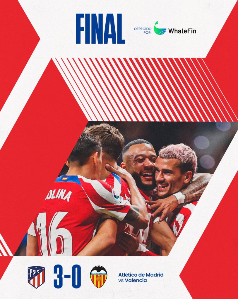 Η Ατλέτικο Μαδρίτης κέρδισε με 3-0 την Βαλένθια και μείωσε στους πέντε βαθμούς την απόσταση της από την Ρεάλ, έχοντας βέβαια παιχνίδι παραπάνω από την «Βασίλισσα». Παραμένουν στην 17η θέση του βαθμολογικού πίνακα οι «Νυχτερίδες».