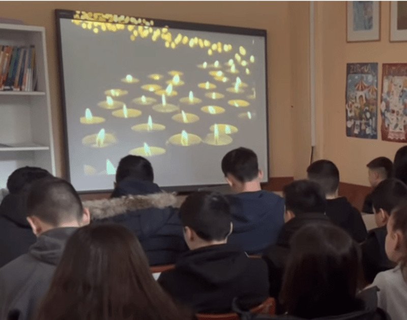 Οι μαθητές και μαθήτριες σχολείου της Θεσσαλονίκης θέλησαν να δείξουν τη θλίψη και τη συμπαράσταση τους στις οικογένειες των ανθρώπων που έχασαν τη ζωή τους στο τραγικό δυστύχημα στα Τέμπη.