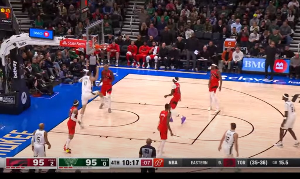 Ο σέντερ των Μπακς «άδειασε» τον Σιάκαμ των Ράπτορς και κάρφωσε ανάποδα στη ρακέτα, στην κορυφαία φάση των αγώνων, που έγιναν την Κυριακή το βράδυ