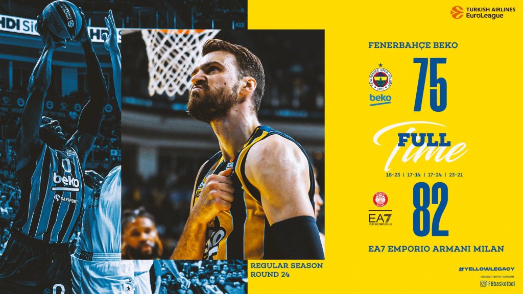 Νέα νίκη - έκπληξη της Αρμάνι Μιλάνο. Η ιταλική ομάδα, που πριν από περίπου δυο μήνες βρισκόταν στα πολύ χαμηλά στρώματα της βαθμολογίας έφτασε τις επτά νίκες στα οκτώ τελευταία παιχνίδια της, βελτίωσε το ρεκόρ της σε 13-16 και εξακολουθεί να παραμένει στο... κυνήγι του «θαύματος». Βλέπετε, το σύνολο του Ετόρε Μεσίνα βρίσκεται δυο νίκες μακριά από την οκτάδα, με πέντε αγωνιστικές να μένουν. Αντιθέτως, η «Φενέρ» υποχώρησε στο 17-12 και έχασε έδαφος στο κυνήγι του πλεονεκτήματος έδρας.