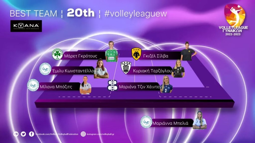 Κεντρικές: Έμιλυ Κωνσταντέλλου (Α.Ο. Θήρας) 13π. (9/13 επ., 4 μπλοκ), Κυριακή Τερζόγλου (Π.Α.Ο.Κ.) 6 (3/6 επ., 2 άσσοι, 1 μπλοκ).