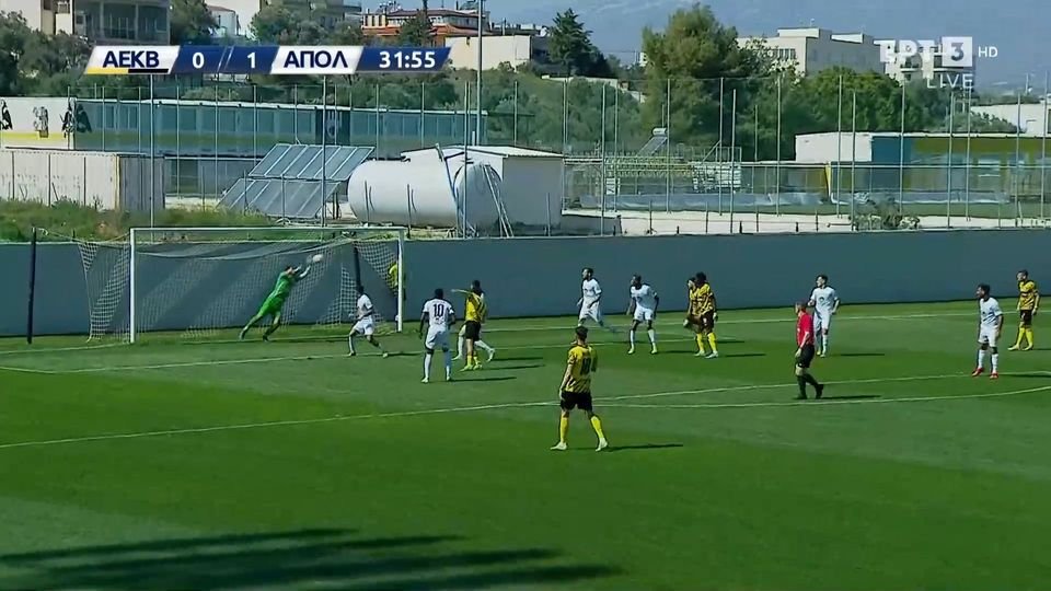ΑΕΚ Β' - Απ. Σμύρνης: Εντυπωσιακή απόκρουση του Κότσαρη στο γυριστό του Γερολέμου (VIDEO)