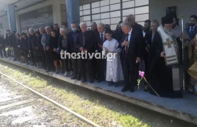 Eπιμνημόσυνη δέηση για τα θύματα των Τεμπών τελέστηκε το πρωί της Κυριακής στο νέο σιδηροδρομικό σταθμό της Θεσσαλονίκης.