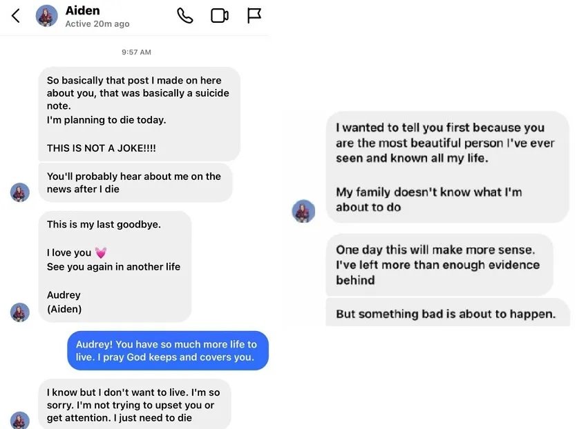 «Πρόκειται σημείωμα αυτοκτονίας. Σκοπεύω να πεθάνω σήμερα. ΔΕΝ ΑΣΤΕΙΕΥΟΜΑΙ!!!» έστειλε σε μήνυμα η Χέιλ σε φίλη της.